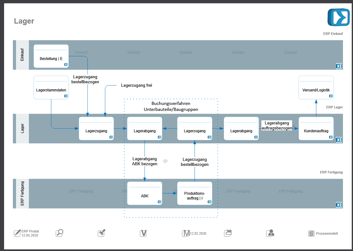 Der Ablauf im Grundprozess sieht vor, dass die in einer ABK hinterlegten Artikel (Kaufteile, Rohmaterial, Vorprodukte) auf die ABK aus dem Lager abgebucht werden.