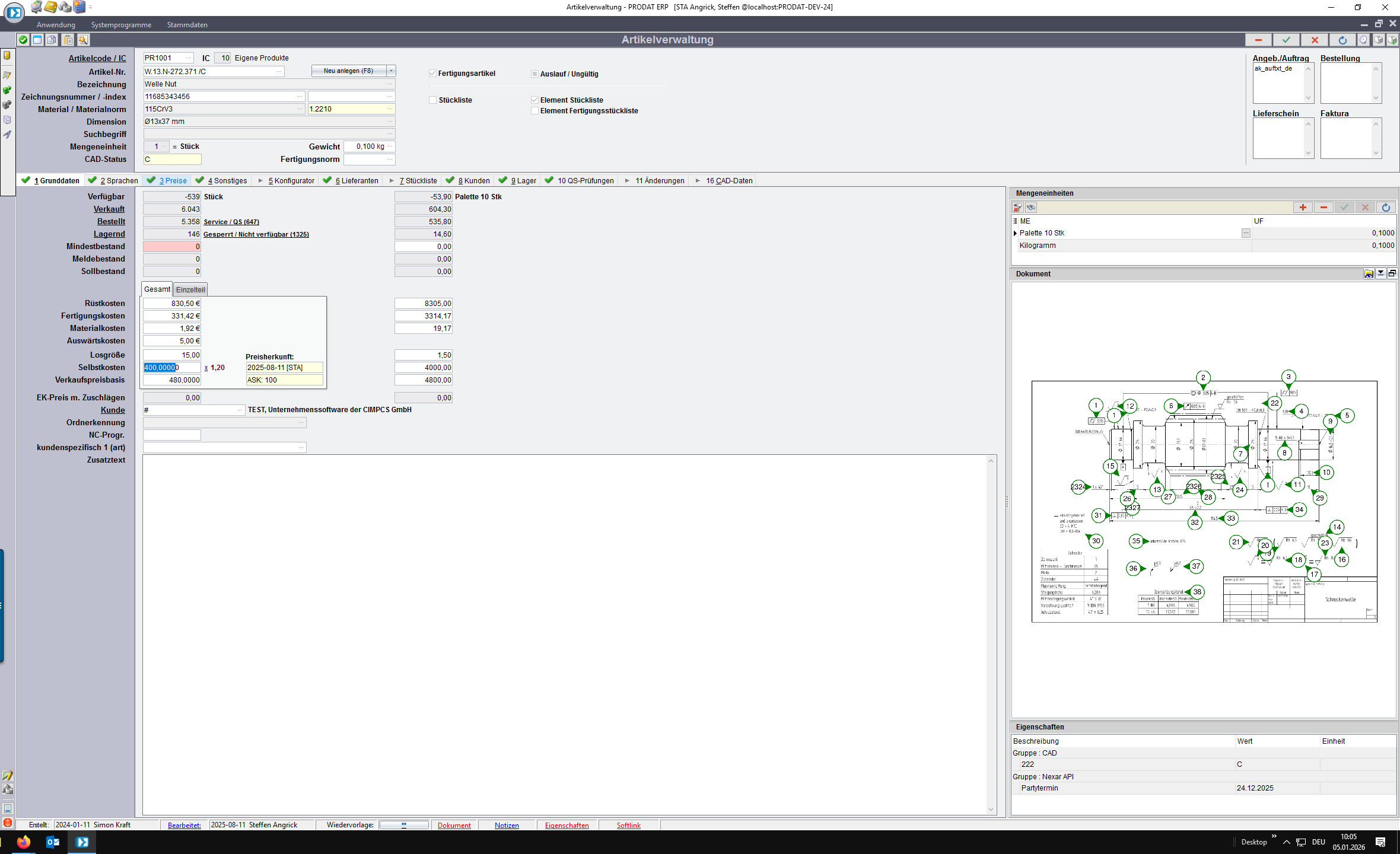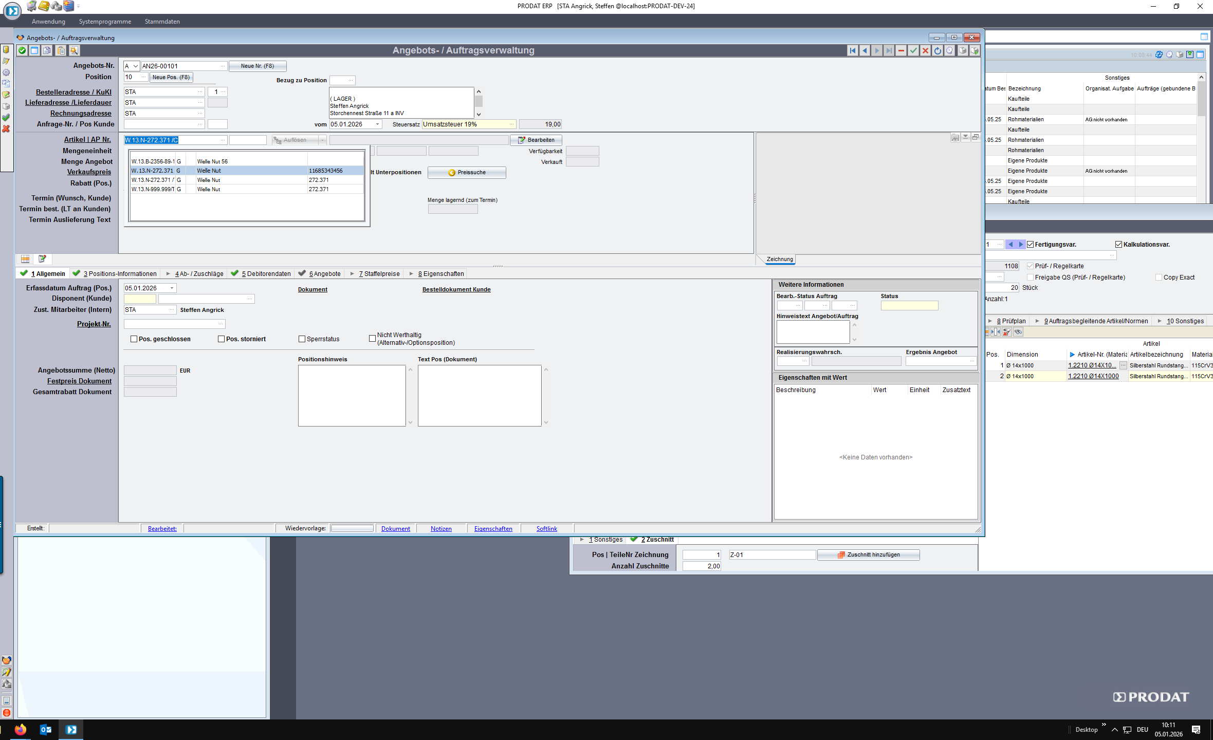 Es wird automatisch der für die Menge geltende Preis eingetragen sowie ggf. gültige Staffeln im Register 7 ergänzt.