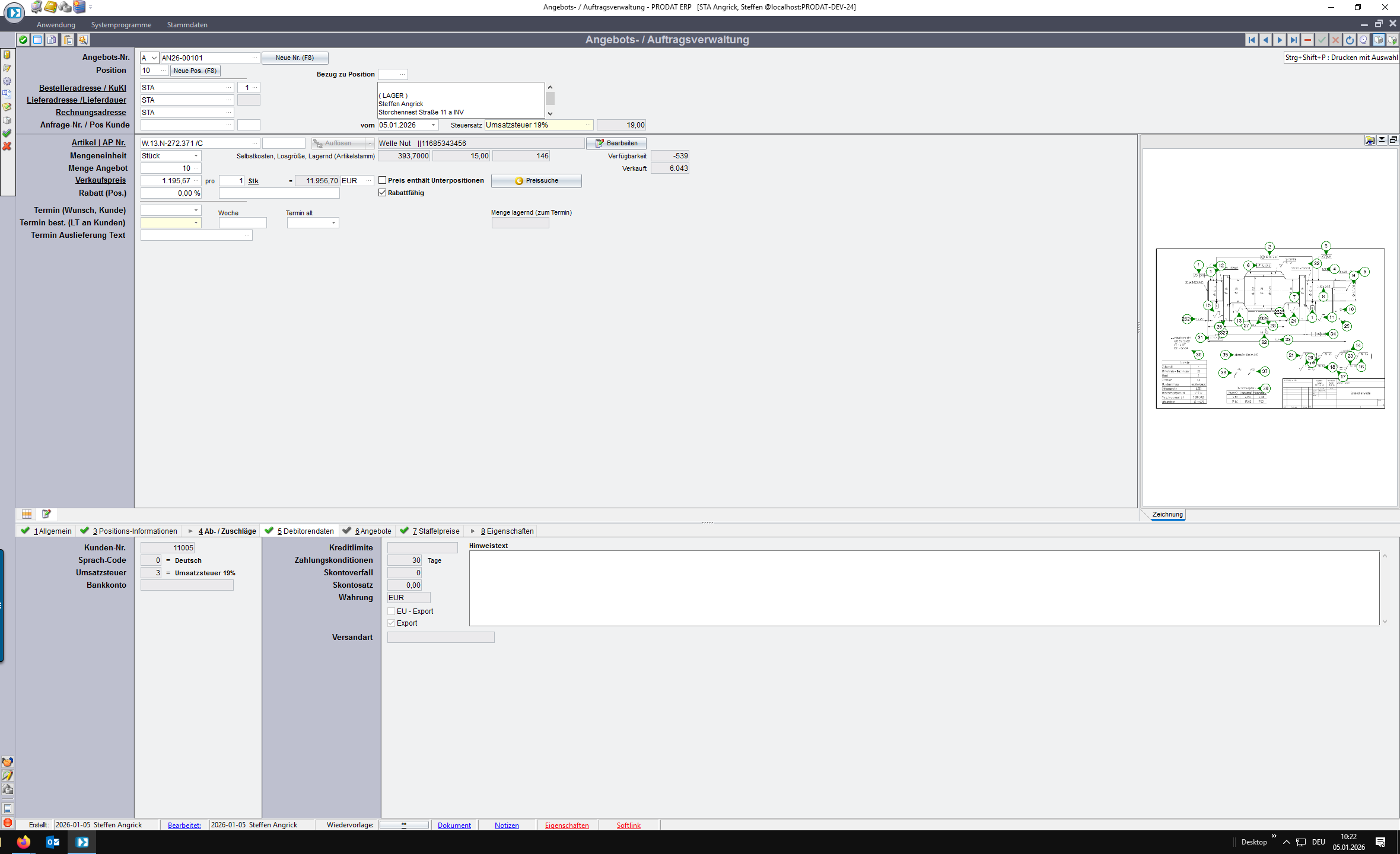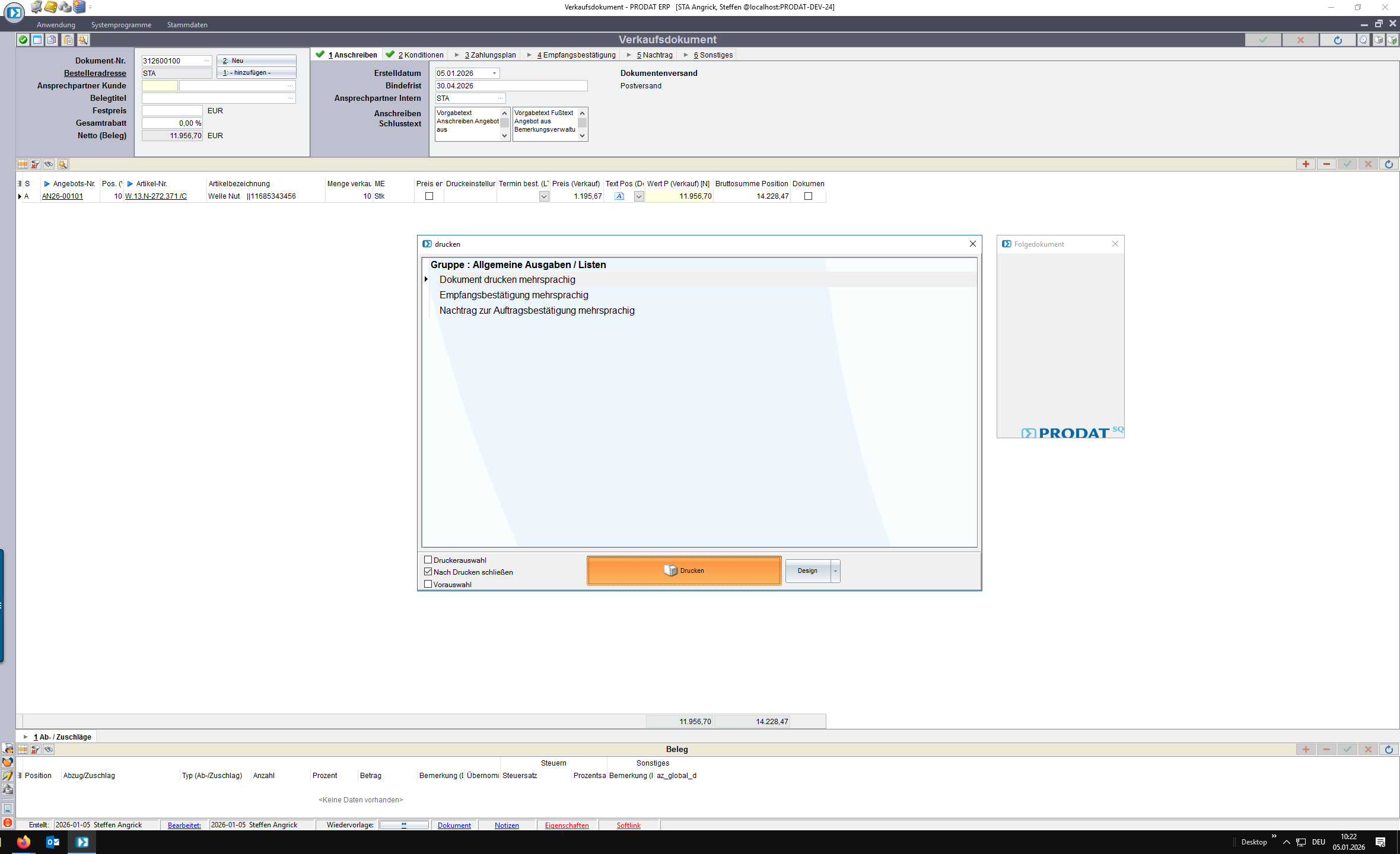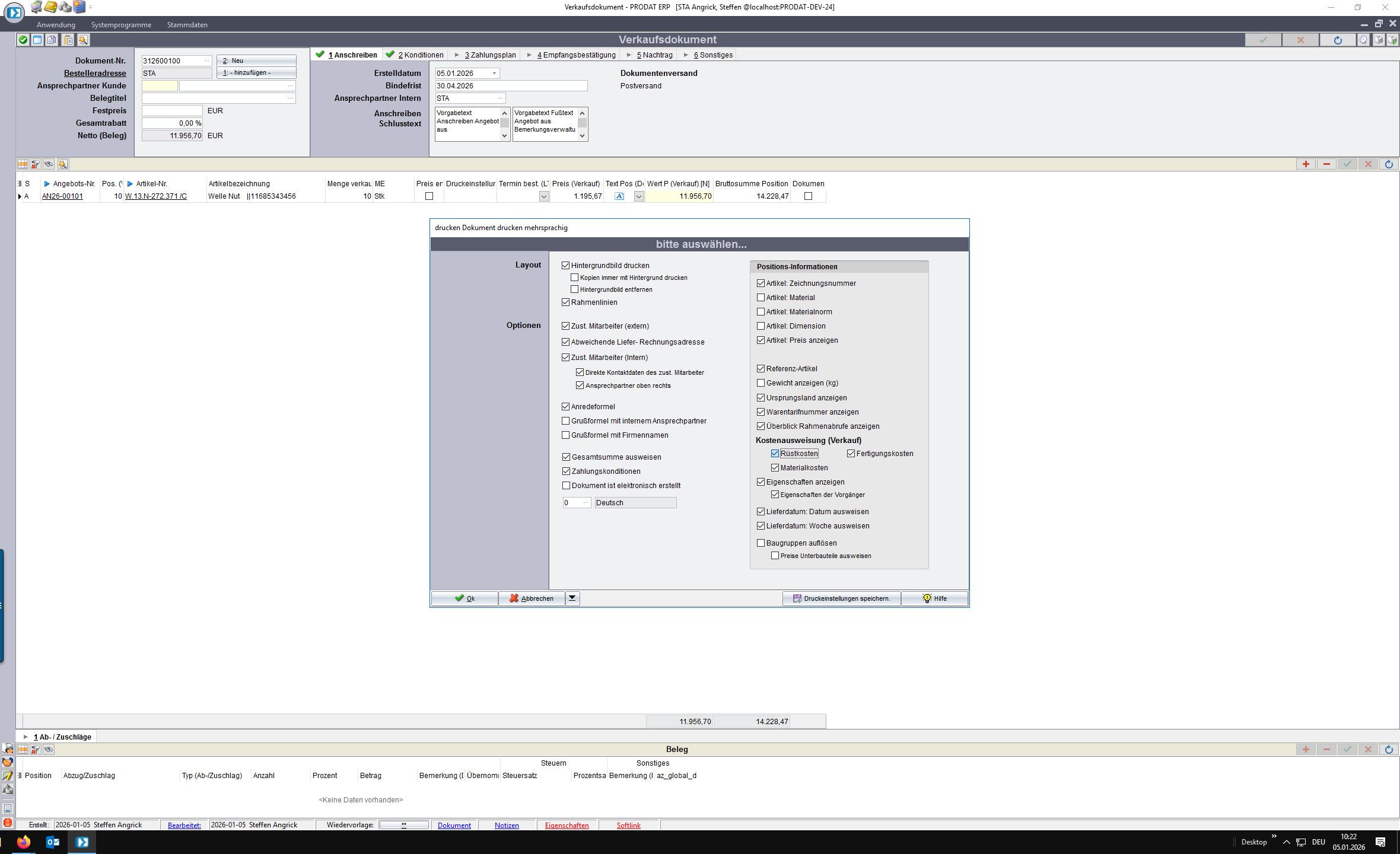 Nun kann das Angebot erzeugt und gedruckt werden.