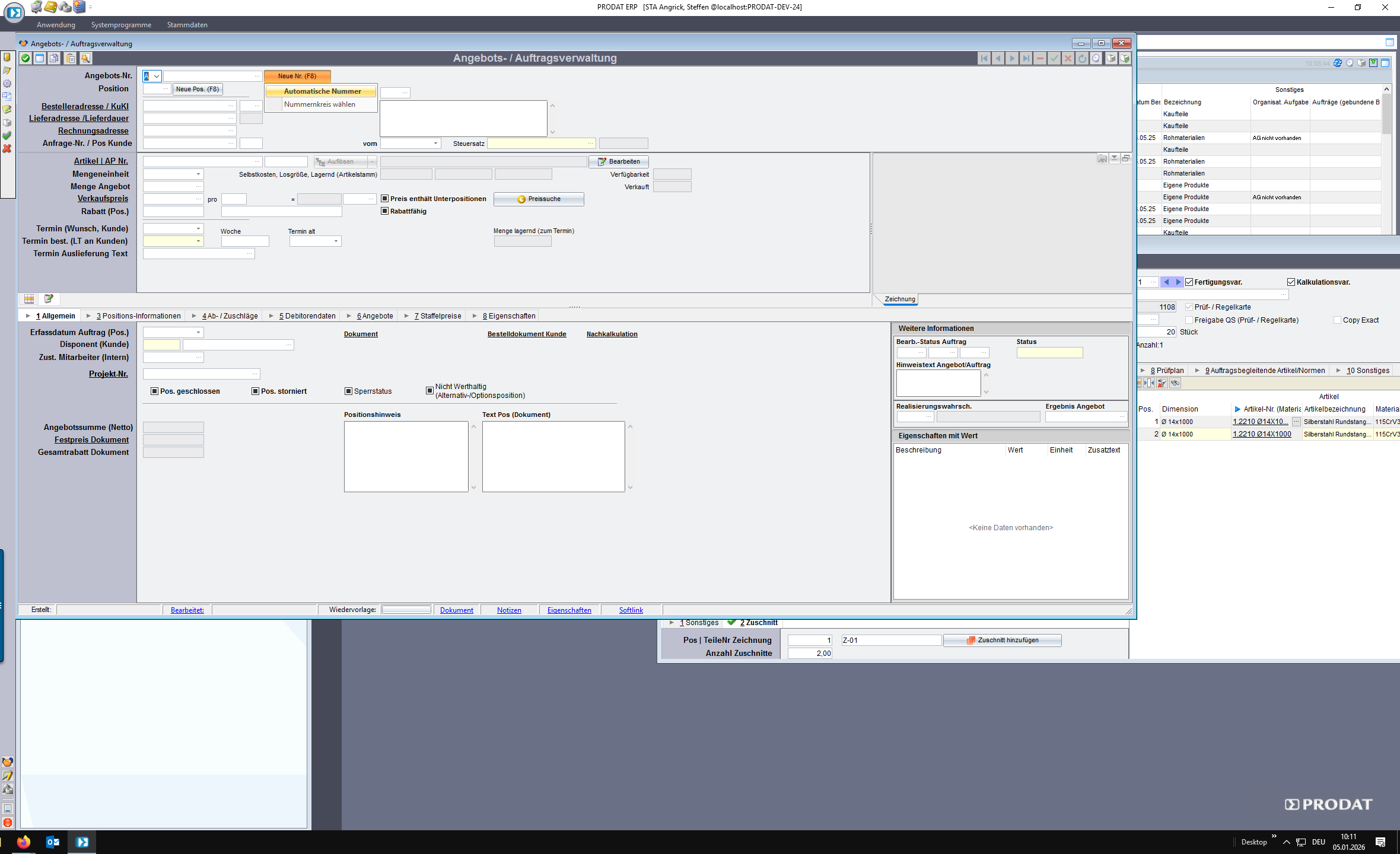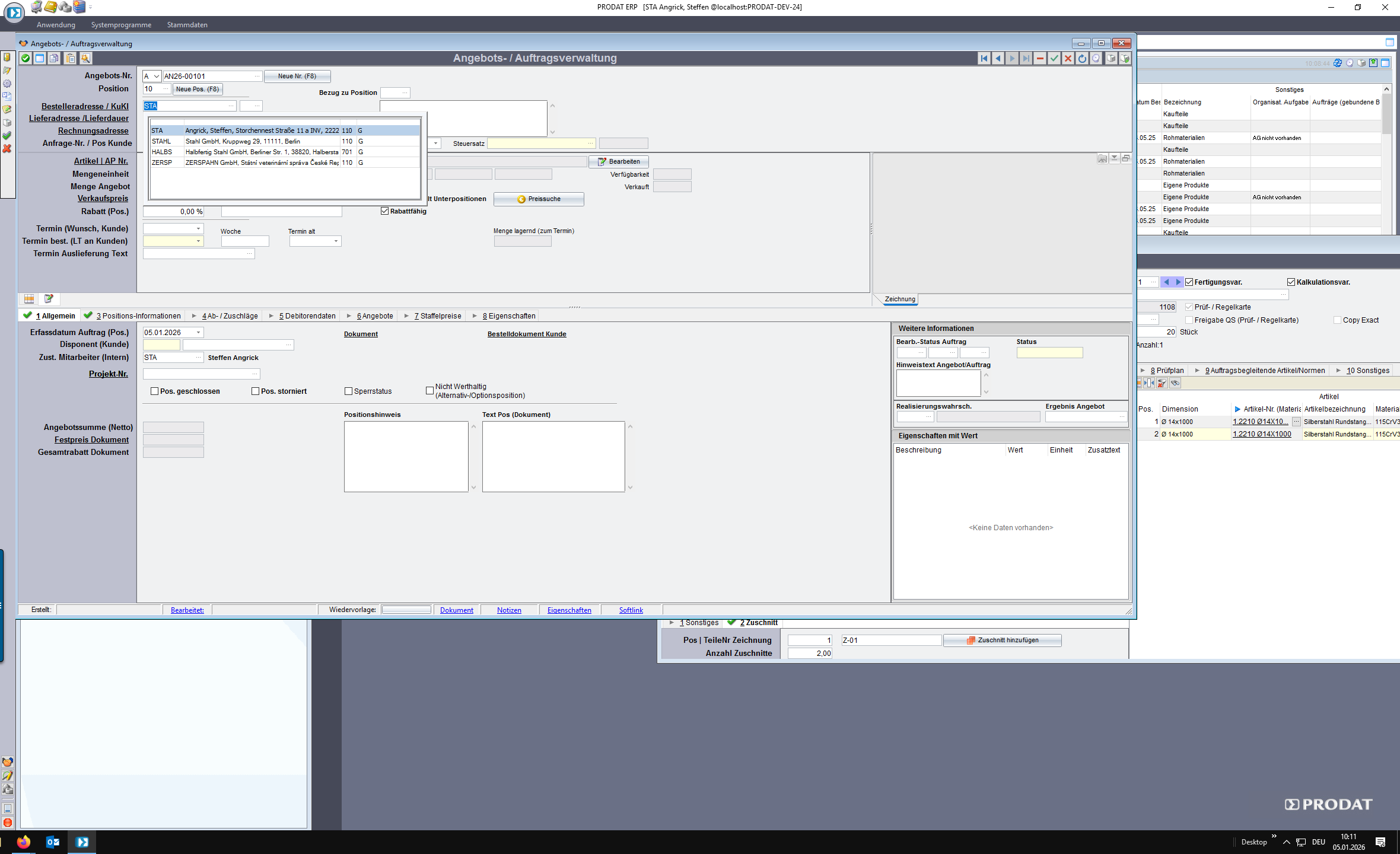 Doppelklick öffnet die Angebotsverwaltung.