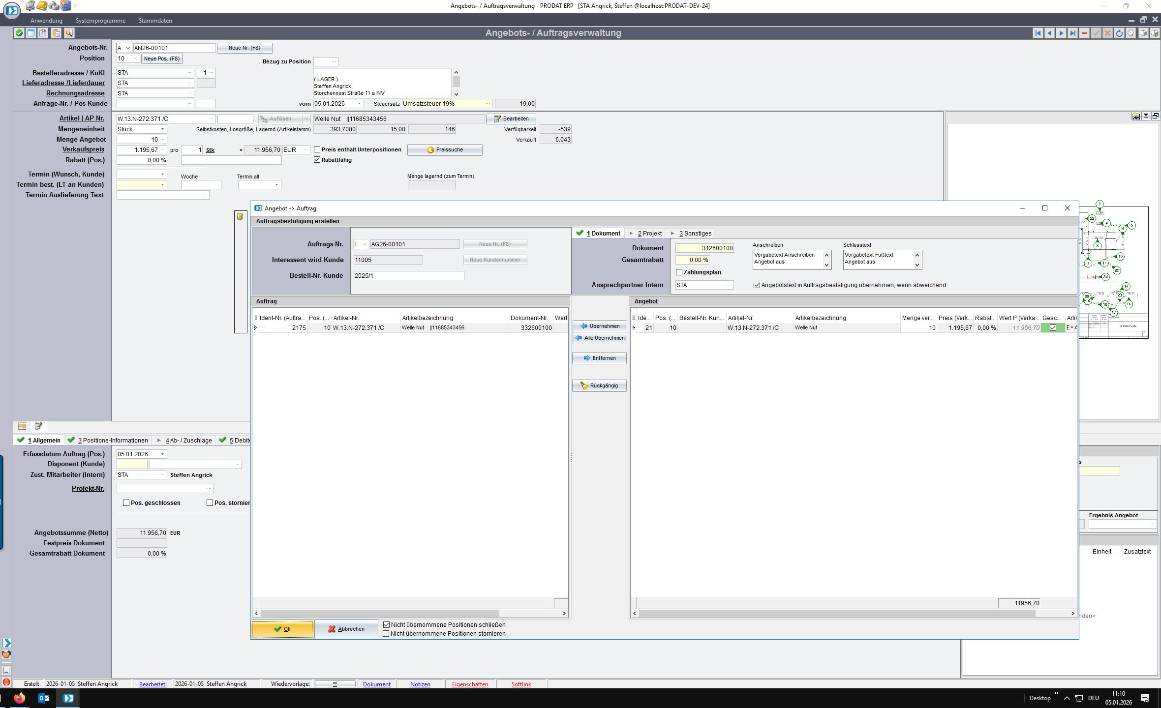 Die Positionen, die in den Auftrag übernommen werden sollen, stehen nun Links.