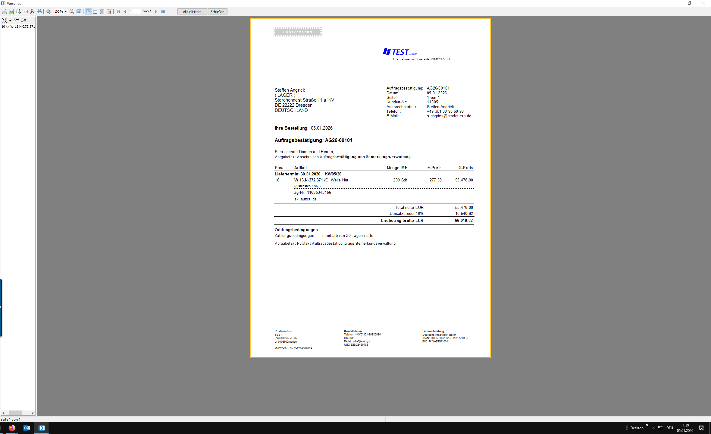 Nachdem Sie ggf. Texte und Konditionen angepasst haben, drucken Sie das Dokument.
