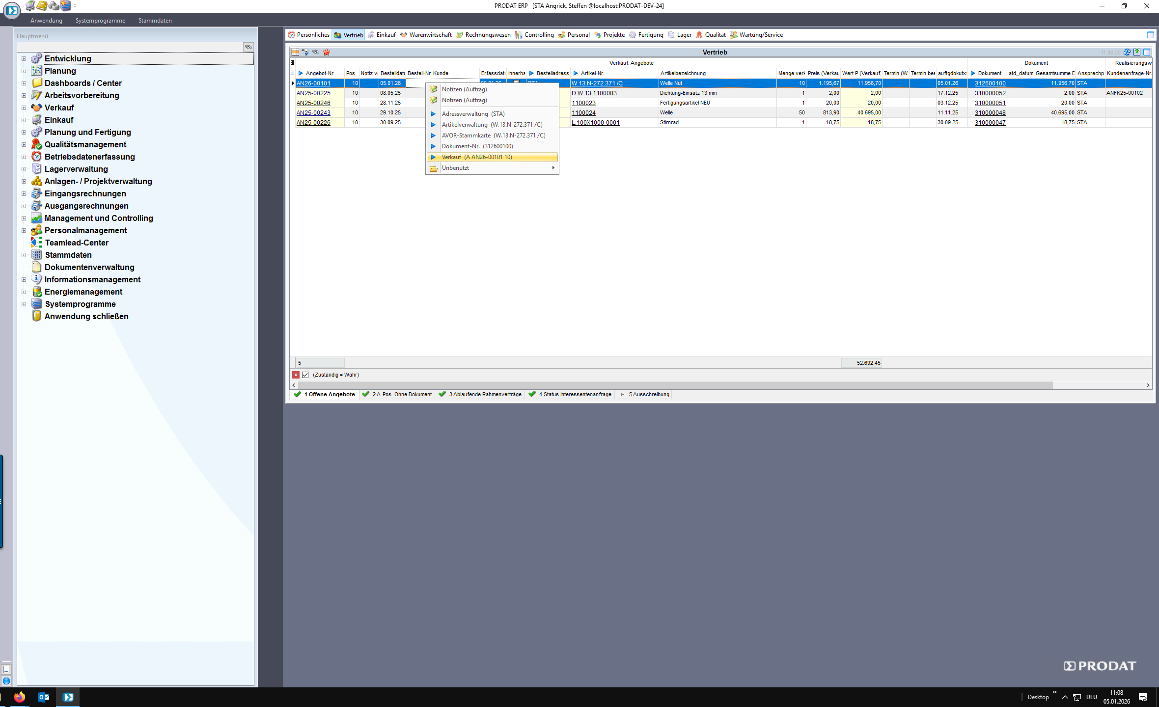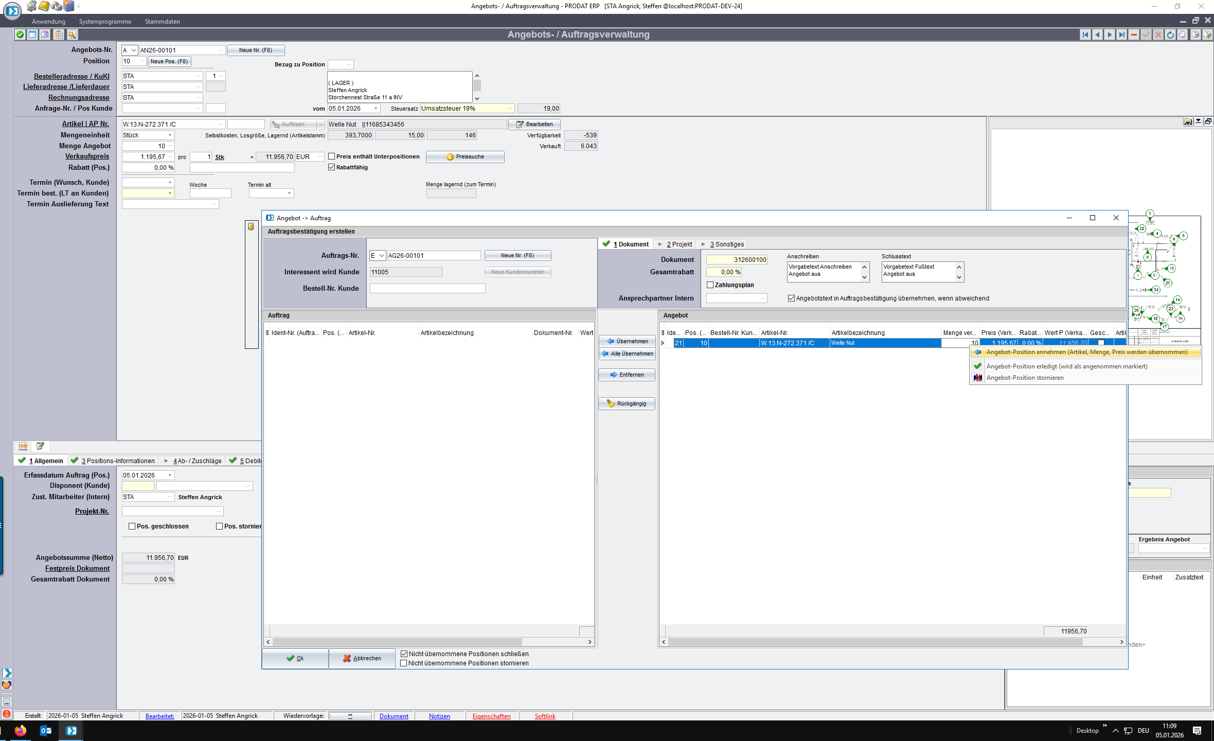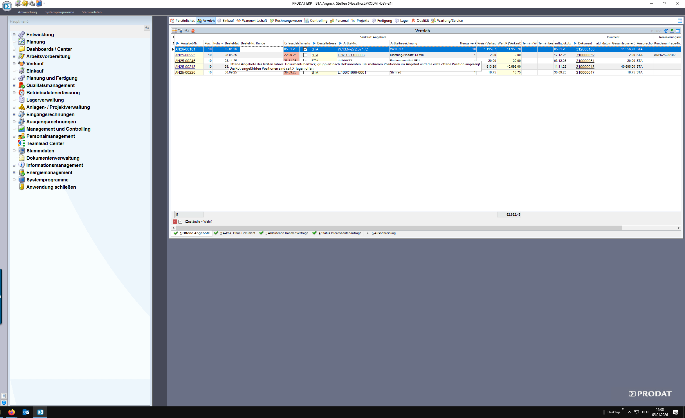 Sie können alternativ auch die Angebotsverwaltung im Hauptmenü starten und das Angebot dort über die Nummer manuell öffnen.